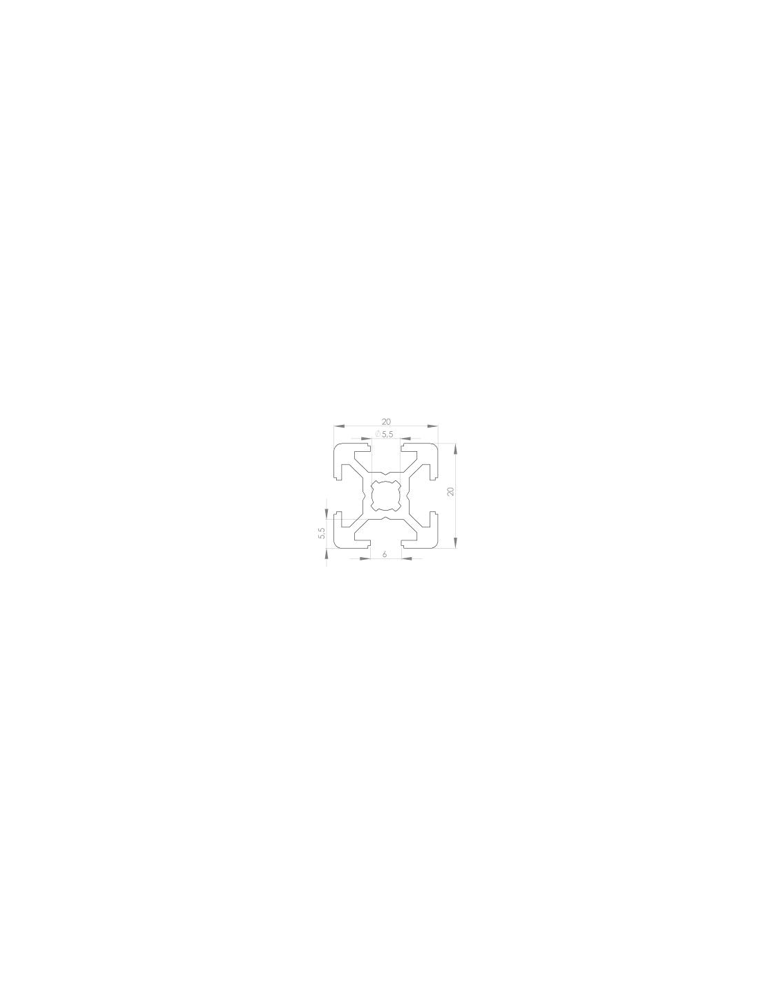 Alu-Strebenprofil 20x20, mit 4 Nuten (6 mm breit).